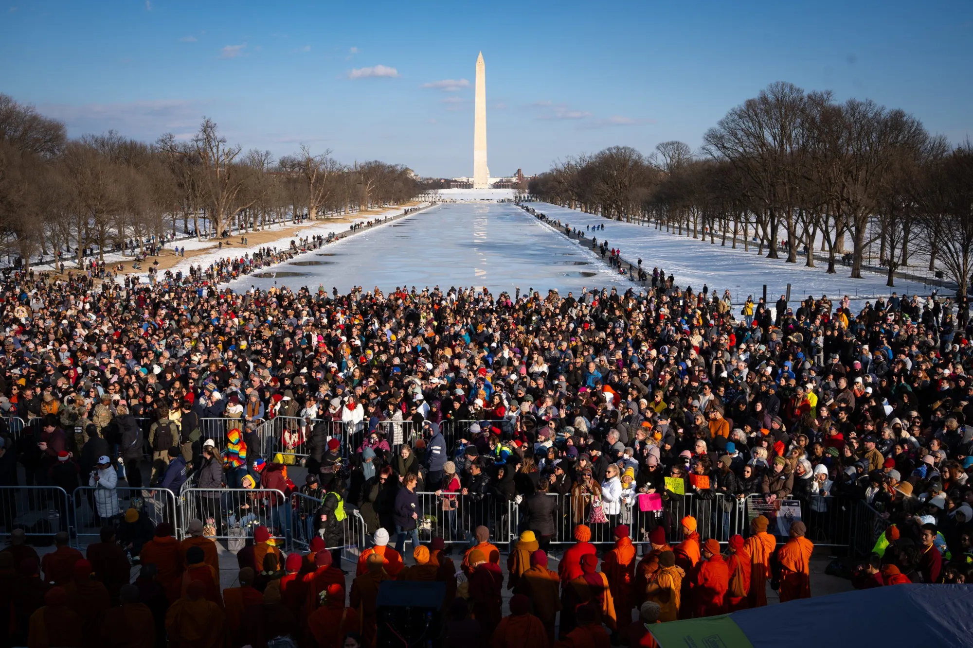 Crowds waited at the Lincoln Memorial in the nation’s capital for the monks’ peace ceremony.