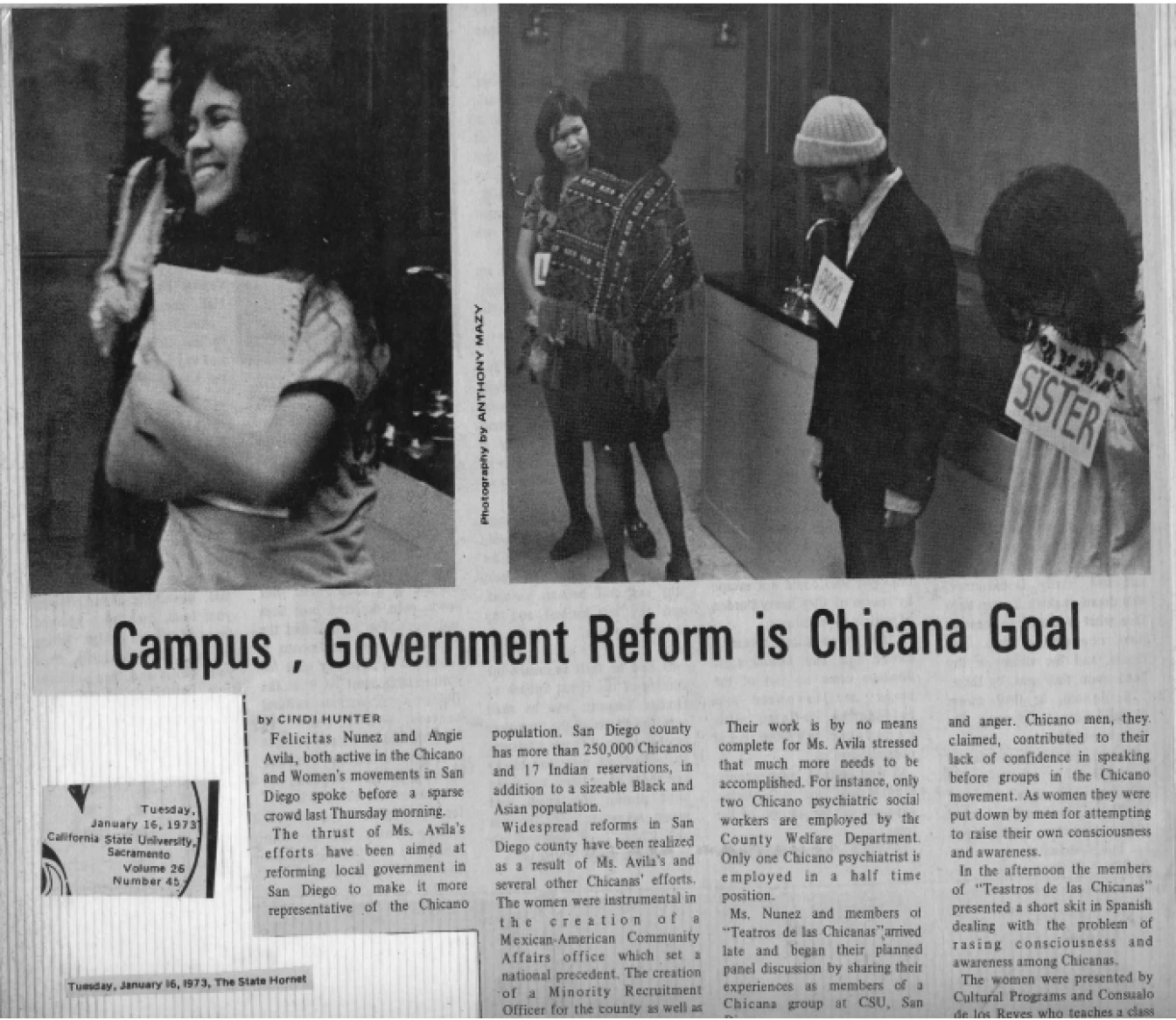 El Teatro Chicana fue una iniciativa de Felicitas Núñez, Delia Ravelo, Laura García y docenas de otras estudiantes universitarias de primera generación que asistían al San Diego State College, hoy conocido como San Diego State University, a principios de la década de 1970. Su trabajo está documentado en las memorias Teatro Chicana.