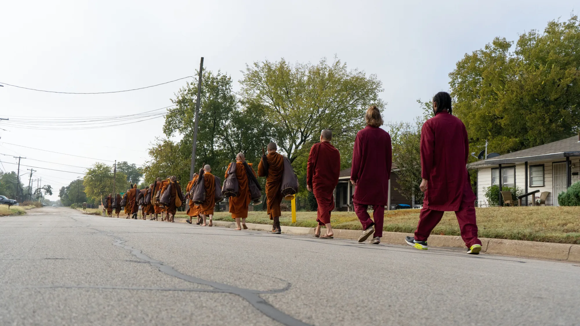 Monjes budistas del Centro Huong Dao Vipassana Bhavana de Fort Worth comienzan su iniciativa Caminata por la Paz el 26 de octubre de 2025. (Marissa Greene | Fort Worth Report)