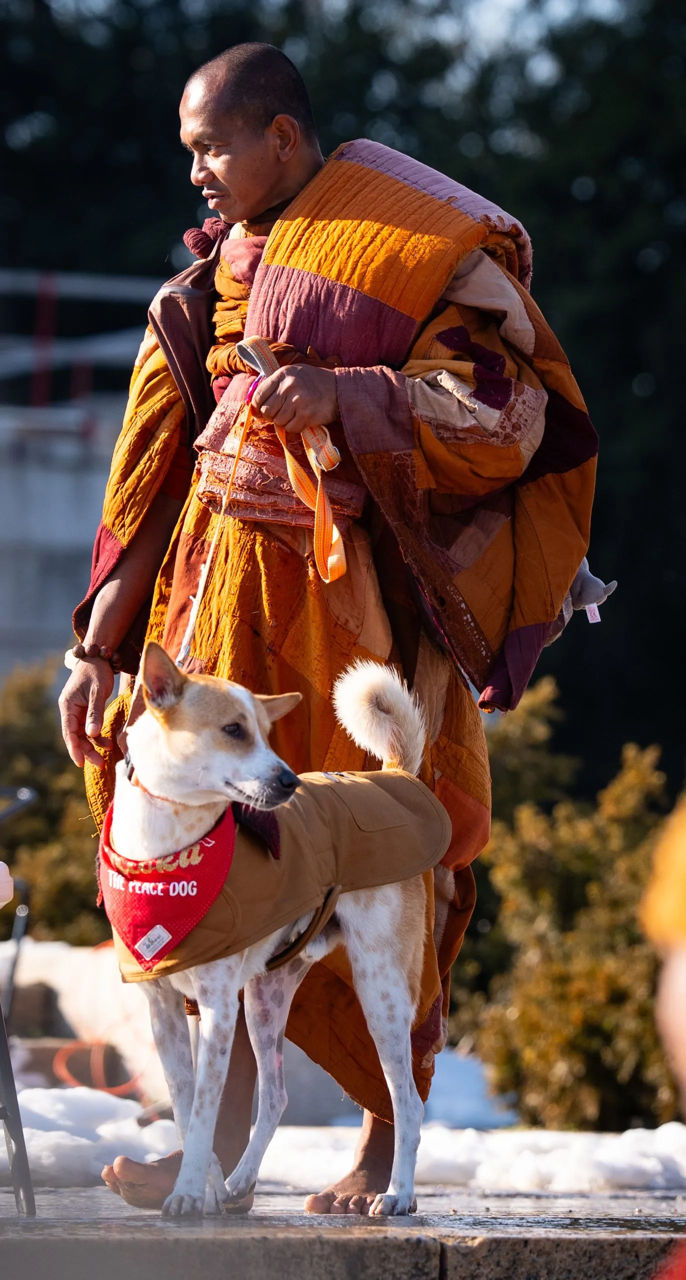 Aloka, el perro de la paz, lidera el camino a casa, al Centro Huong Dao Vipassana Bhavana, el 14 de febrero de 2026. (Maria Crane | Fort Worth Report/CatchLight Local/Report for America)