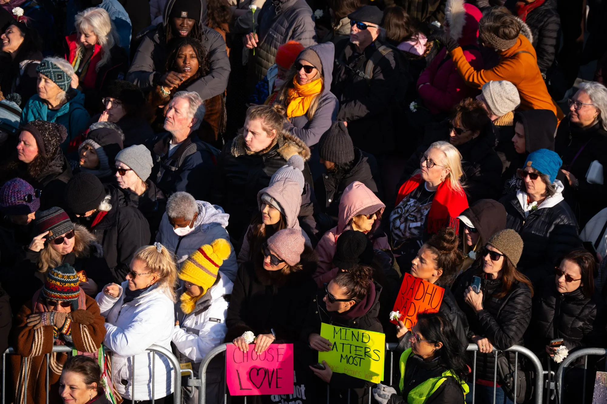 A pesar del frío, miles de personas se congregaron en Raleigh, Carolina del Norte, el 24 de enero de 2026 para ver a los monjes budistas de Fort Worth en su Caminata por la Paz. (Walter Gómez | Enlace Latino NC)